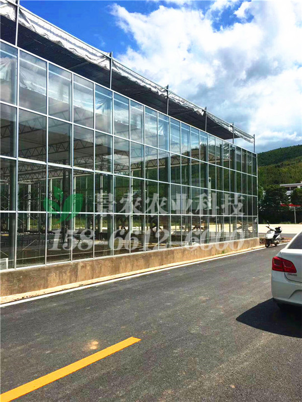 玻璃温室指以玻璃作采光材料的温室,属于温室大棚的一种 ,在栽培设施中,玻璃温室作为使用寿命最长的一种形式, 适合于多种地区和各种气候条件下使用。行业内以跨度与开间的尺寸大小分为不的建设型号,又以不同的使用方式分为:蔬菜玻璃温室、花卉玻璃温室、育苗玻璃温室、生态玻璃温室、科研玻璃温室、立体玻璃温室、异形玻璃温室、休闲玻璃温室、智能玻璃温室等等。其面积与使用方式可有温室主自由调配,最小的有庭院休闲型的,大的高度可达10米以上,跨度可达16米,开间最大可达10米,智能程度可达到一键控制 。玻璃温室的冬季采暖问题可采用多种供暖方式,其能耗费用居中,大都能接受。